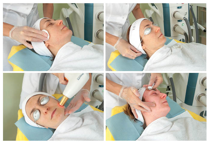 Непосредственно перед началом процедуры очищаются и дезинфицируются те участки, на которые будет произведено воздействие. Затем проводится их обработка IPL и / или ResurFX. При этом регулируемая площадь светового пятна позволяет применять лучи направленно и обрабатывать труднодоступные места (к примеру, крылья носа).